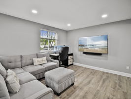 Upstairs, you’ll find two generously sized bedrooms, both with recessed lighting, creating a warm and inviting atmosphere. The upper level also features a beautifully upgraded full bathroom. On the main floor, enjoy the convenience of a stylish half bath.